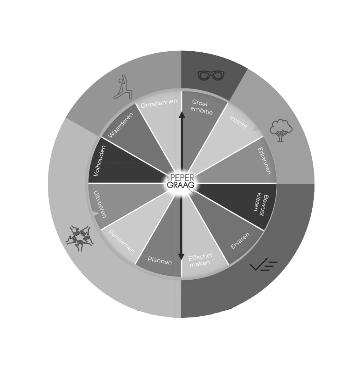 De Met Peper Graag® Methode is een systemische en tegelijkertijd praktische aanpak. Het model laat jou duidelijk zien waar jouw leiderschap staat, wat er onder de oppervlakte speelt en welke stap op dat moment nodig is. Het model combineert leiderschap met het realiseren van organisatiedoelen. In twaalf concrete stappen doorbreek je patronen, voorkom je ze en zet je gedrag, keuzes, MT-dynamiek en samenwerking consistent in beweging.